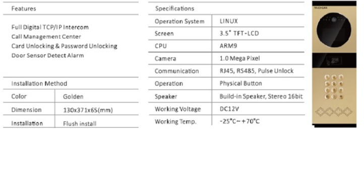 یکی از عملکردهای این پنل کار از طریق کارت ها یا برچسب ها است. همانطور که در بالا اشاره کردیم، این پنل از پروتکل شبکه و SIP پشتیبانی می کند. بنابراین، شما به یک سرور SIP نیاز دارید تا از تمام ویژگی های آن به خوبی استفاده کنید. از نظر فیزیکی، پانل چند بخش می تواند دمای محیط از منفی ۲۵ تا ۵۵ درجه سانتیگراد با رطوبت ۱۰ تا ۹۰ درصد را تحمل کند. بنابراین برای شرایط مختلف آب و هوایی گزینه مناسبی است.